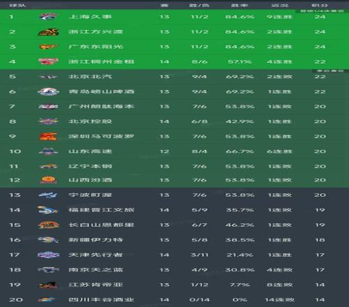 CBA第14轮结束了3场比赛,最新积分榜如下!